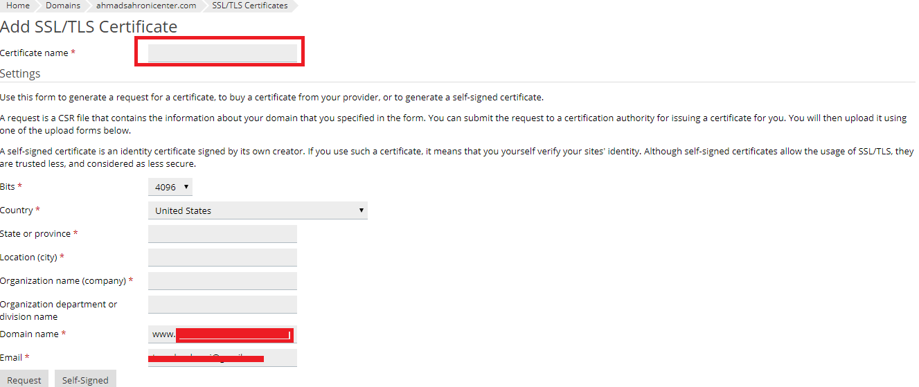 - isi form sesuai nama domain dan lokasi dan klik Request