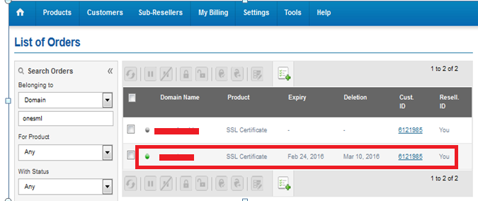 dan klik nama domain nya akan muncul code CSR nya silahkan di Copy dan di Paste ke Panel SSL nya