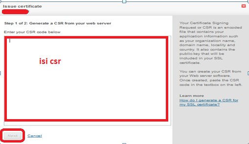 - setelah itu akan muncul sertfikat CSR seperti dibawah ini