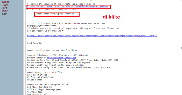 - setelah proses diatas akan ada email dari ssl provider ke email aproval admin@namadomain dan email sesuai contoh diatas